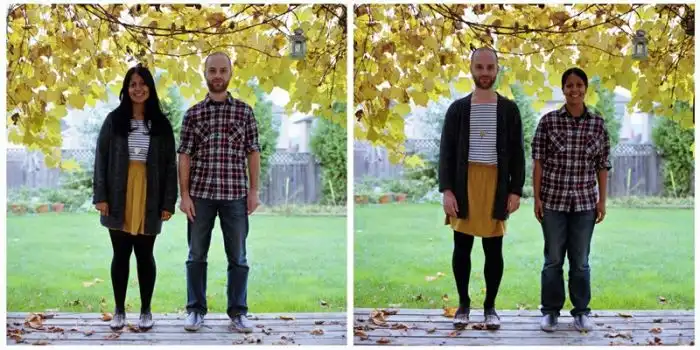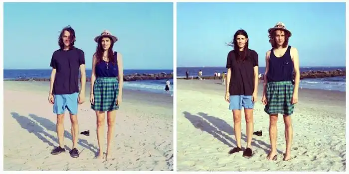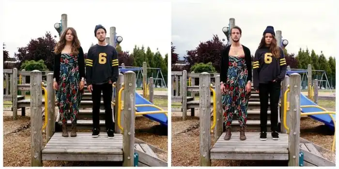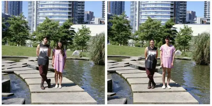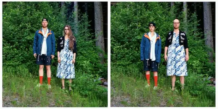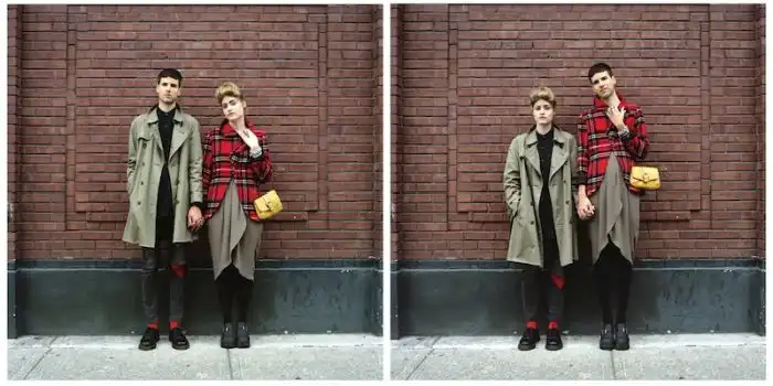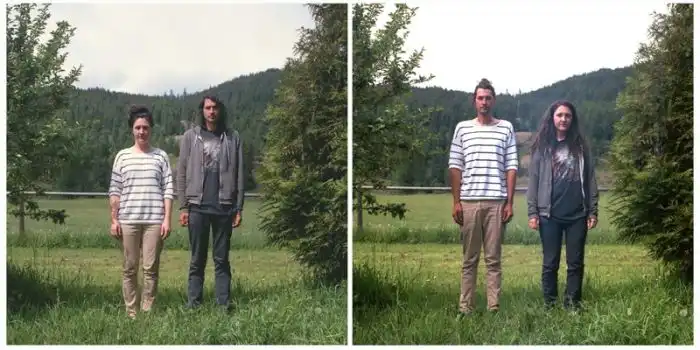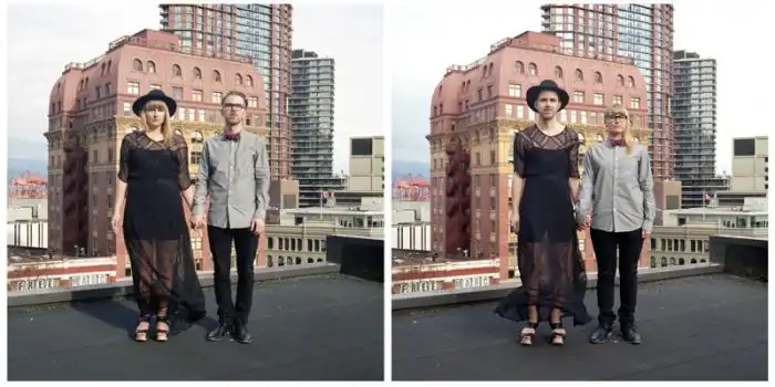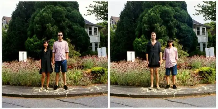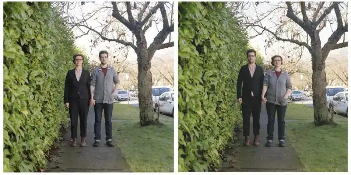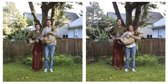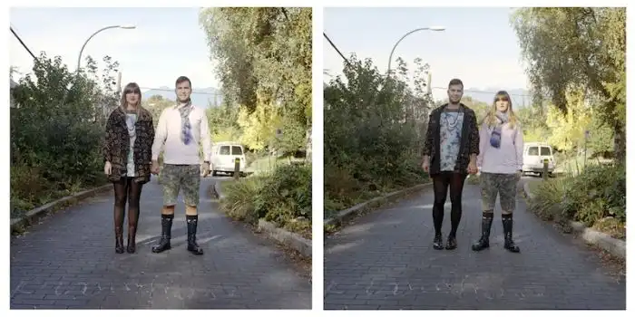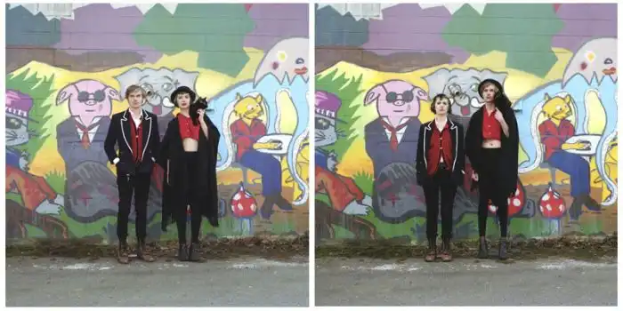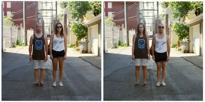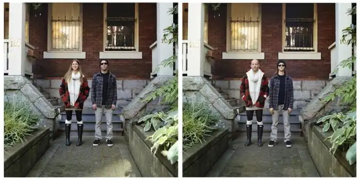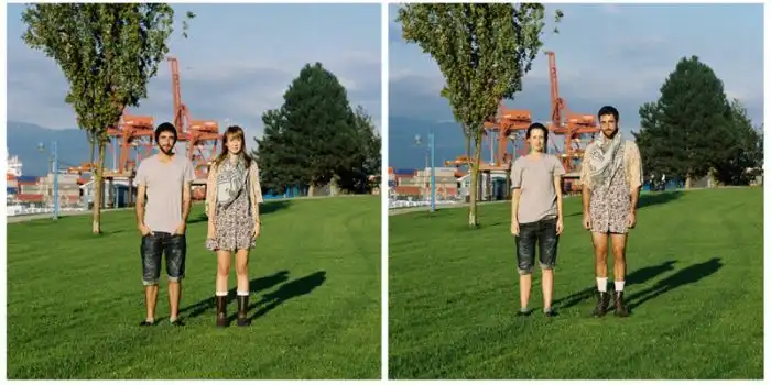 когда люди меняются одеждой, а все остальное на фотографии остается без изменений.