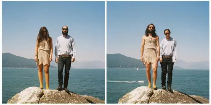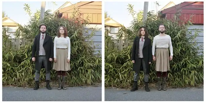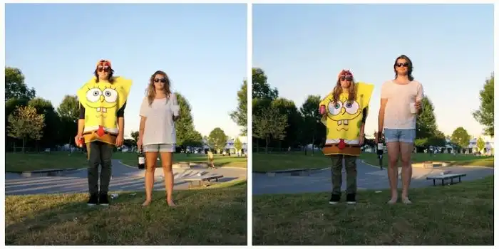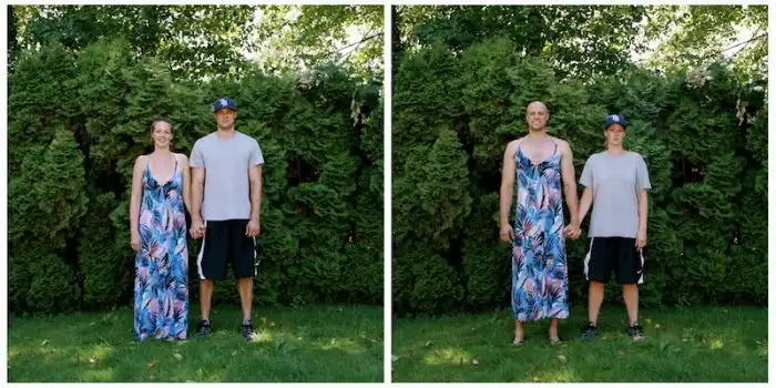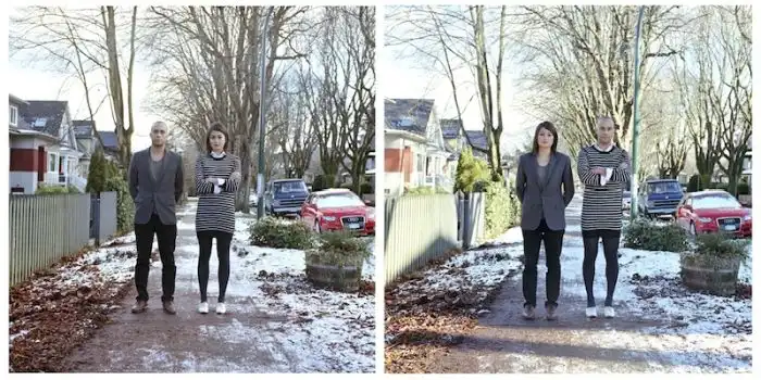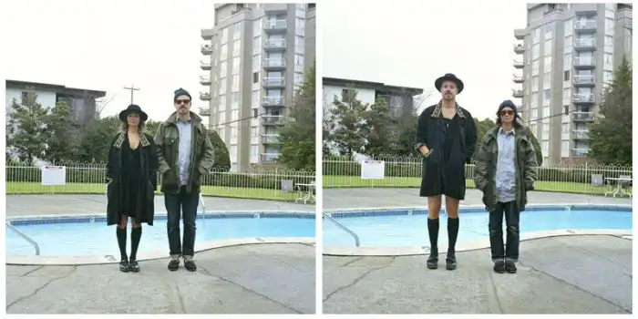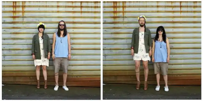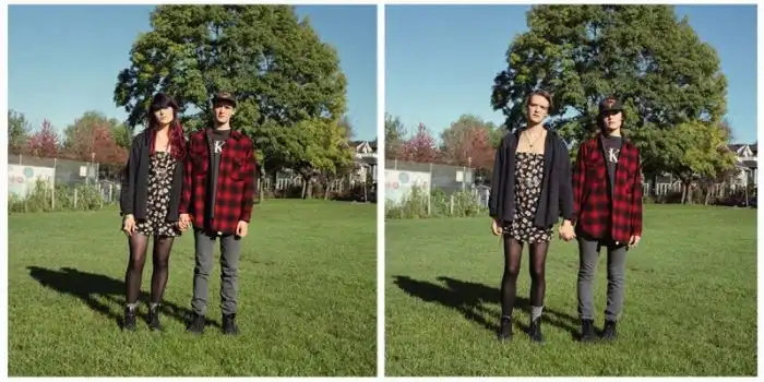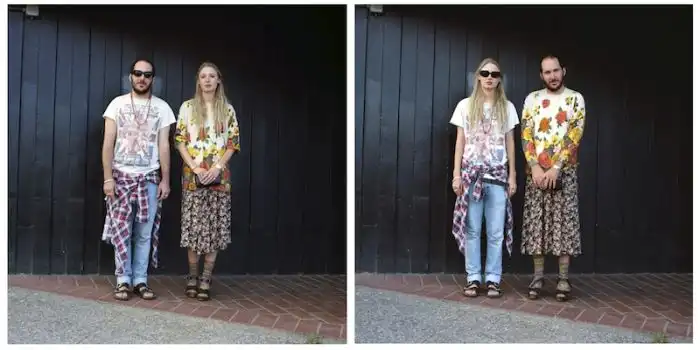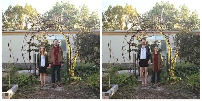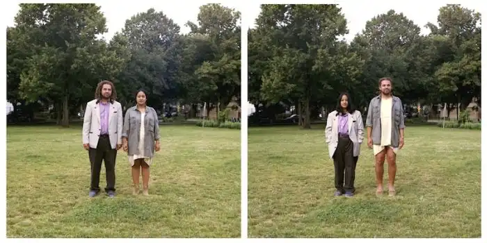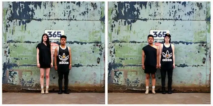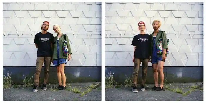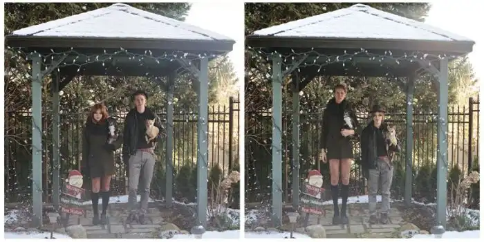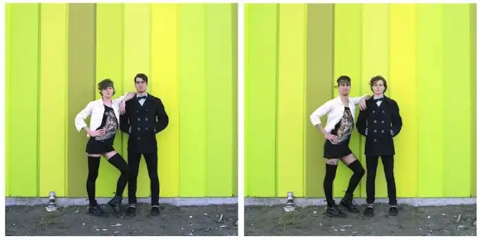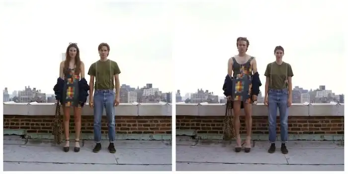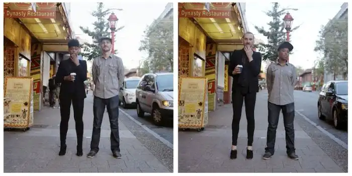 когда люди меняются одеждой, а все остальное на фотографии остается без изменений.