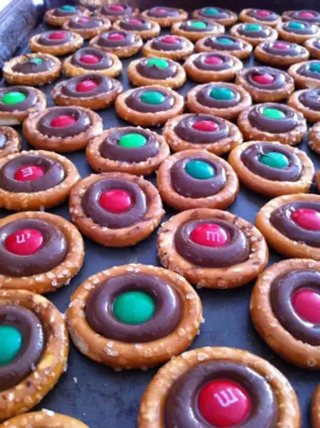 10. M&M на соленом крекере с расплавленным шоколадом: