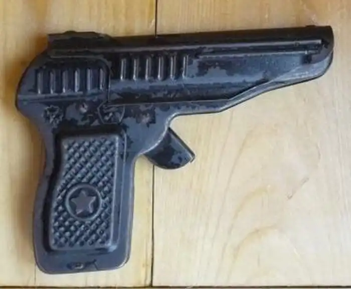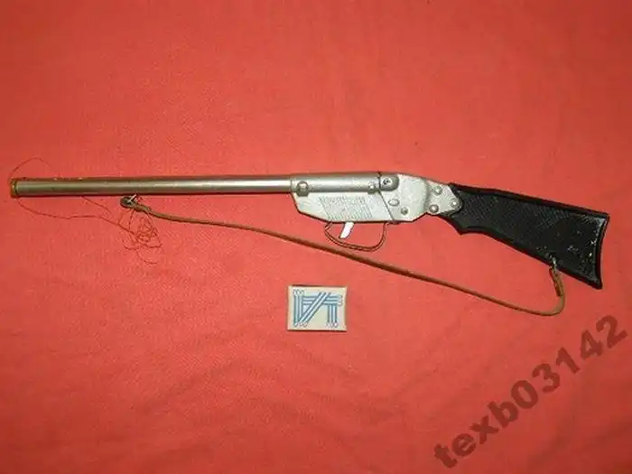 Понятно, что одной игрой в солдатиков игры советских детей не ограничивались. Ещё играли в "войнушку", для чего нужны соответственные девайсы. Кроме абсолютно самодельных у меня были ещё и покупные: