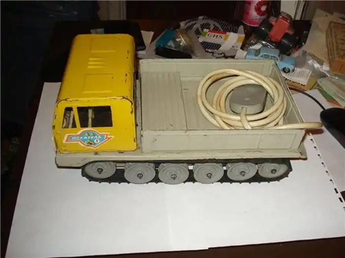У меня был такой, но не кран, а с кузовом. Он был на проводном управлении, и кузов тоже поднимался с пульта. Было круто.