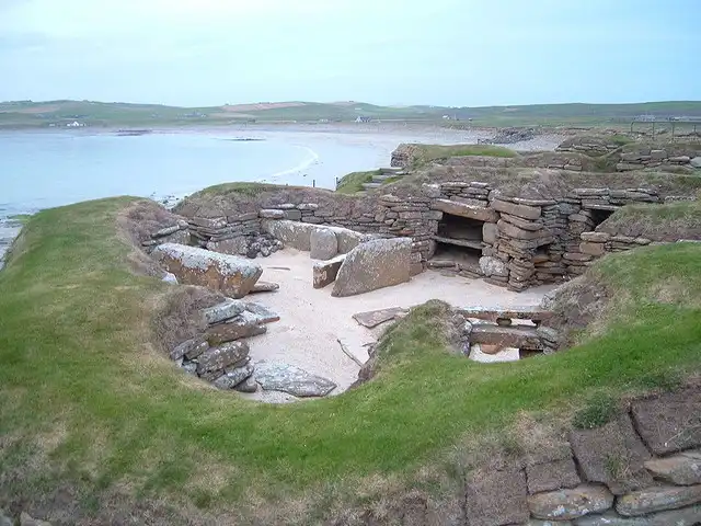 Город на западном побережье острова Мейнленд, Оркнейские острова, Шотландия, очень хорошо сохранился, из-за того, что в течение сотен лет находился под песками. Только в 1850 году, сильный шторм начал размывать пески. В забытом городе сохранились не только стены и руины, но и много мебели, которая высекалась из камня, а не из дерева, из-за отсутствия деревьев. После изменения климата жители просто покинули этот город. Дома были заселены в период примерно 3100-2500 гг. до н. э.