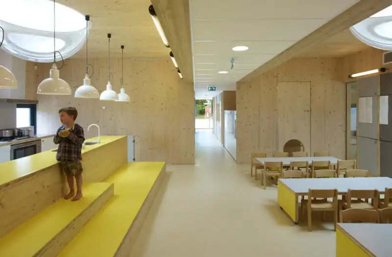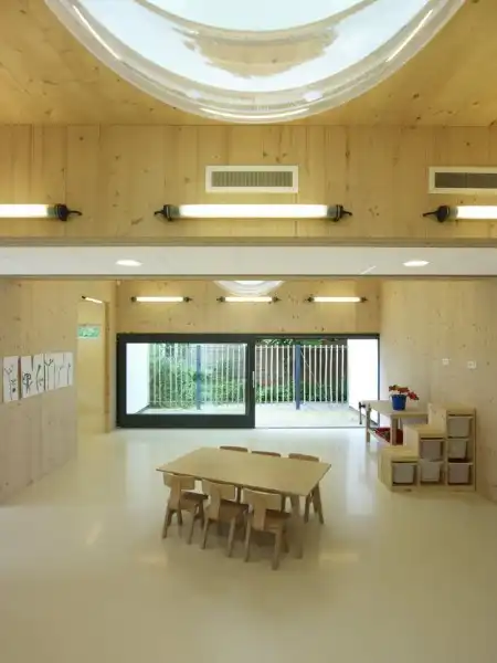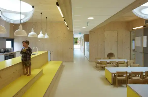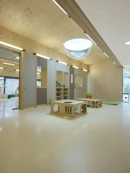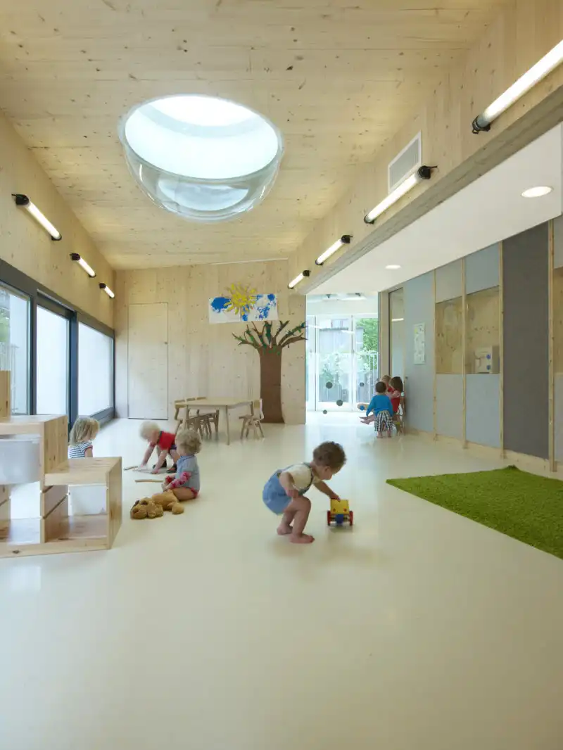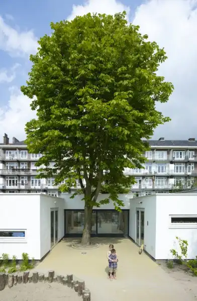 NEXT Architects совместно с дизайнером Claudia Linders представили проект детского учреждения Hestia в Амстердаме. Этот современный центр дневного пребывания для детей дошкольного возраста напоминает небольшой город с четкой сеткой улиц и кварталов. Он представлен рядом связанных между собой помещений общей площадью 560 кв. метров, каждое из которых предлагает что-то новое. Функционально они разделены на несколько групп, включая служебные помещения, игровые комнаты, спальни и кладовые. Тем не менее, все помещения плавно перетекают из одного в другое, создавая эффект непрерывности и целостности. Важное место в проекте также отведено открытым зонам, которые сменяют закрытые участки. Они дарят детям большую свободу, но не ставят под угрозу их безопасность.