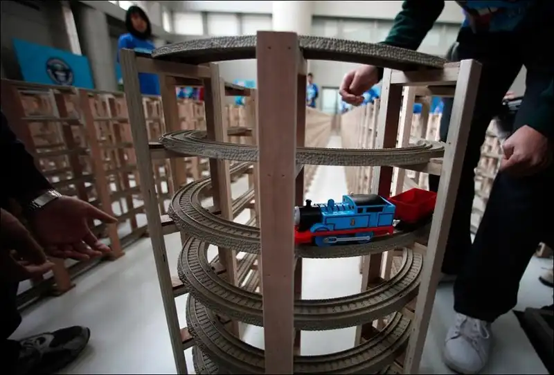 Шанхайские мастера построили самую длинную в мире игрушечную железную дорогу. Её длина — 2888 метров.