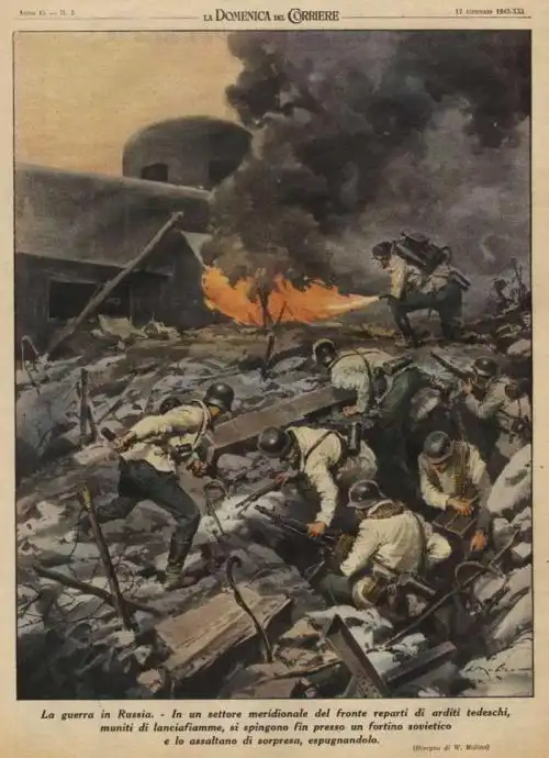 Подразделение итальянских горных стрелков героически атакует советские боевые позиции в излучине Дона