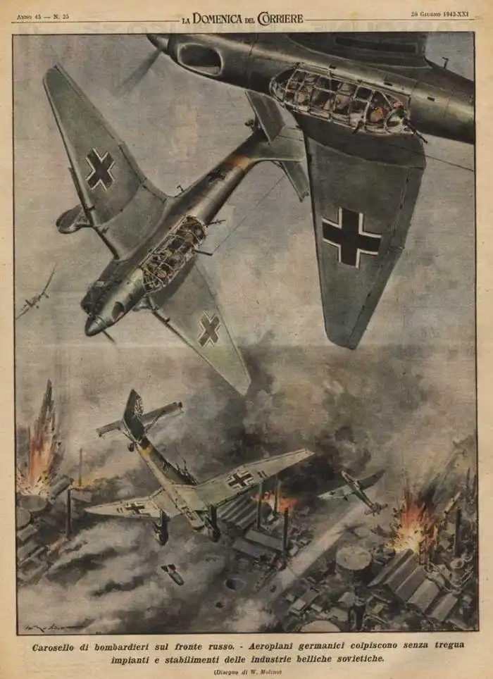Немецкие Юнкерсы бомбят советский промышленный объект
