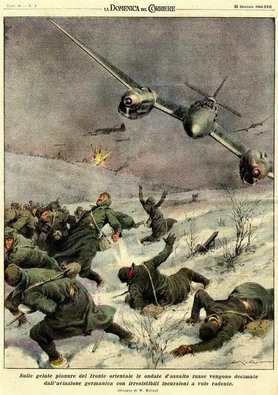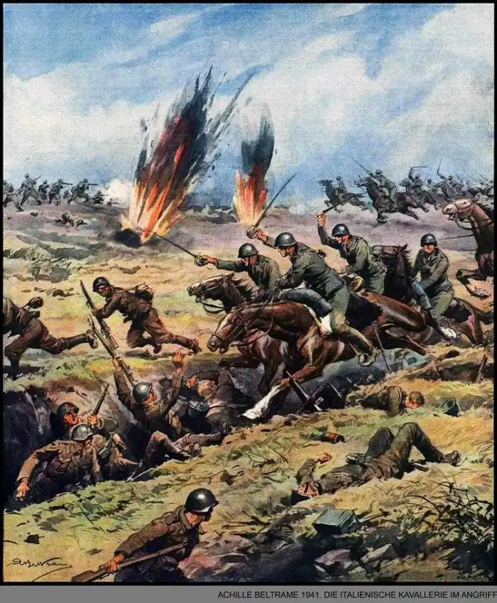 Итальянские солдаты храбро отражают атаку конного подразделения Красной Армии возле реки Северский Донец