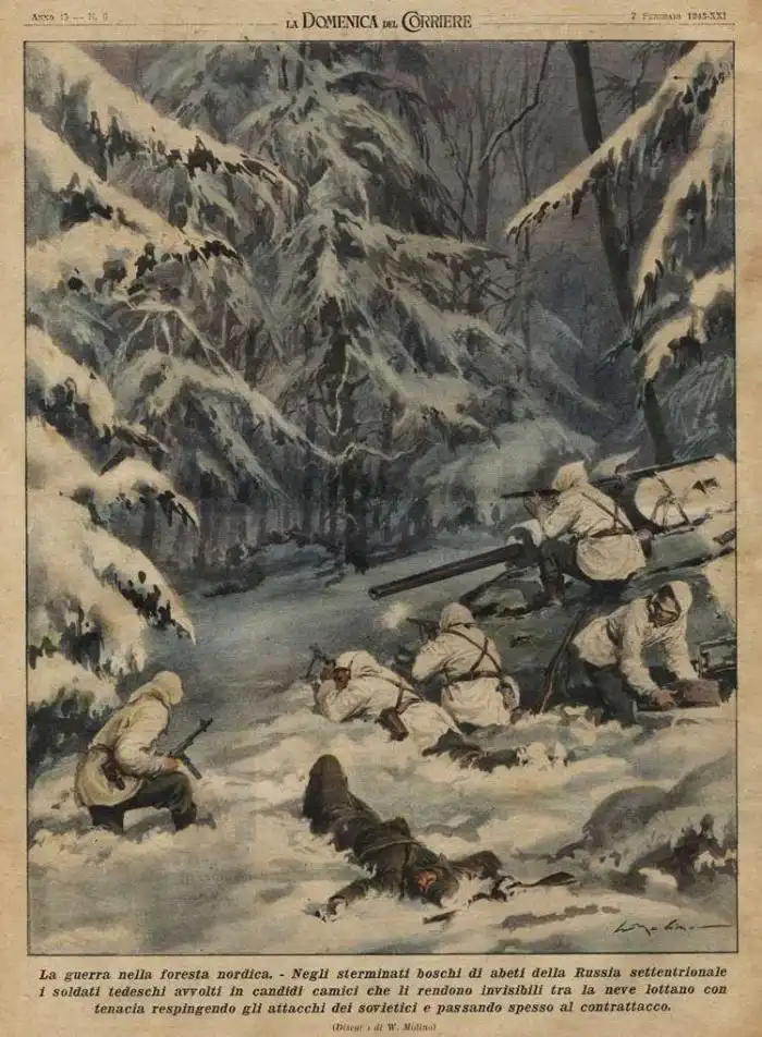 В лесах на севере России - подразделение немецкого Вермахта в засаде