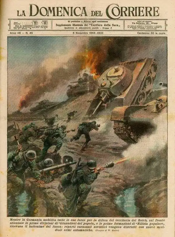 Первый опыт боевого применения панцершреков и фаустпатронов - Подразделение немецкого Фольксштурма противостоит наступающим советским танкам