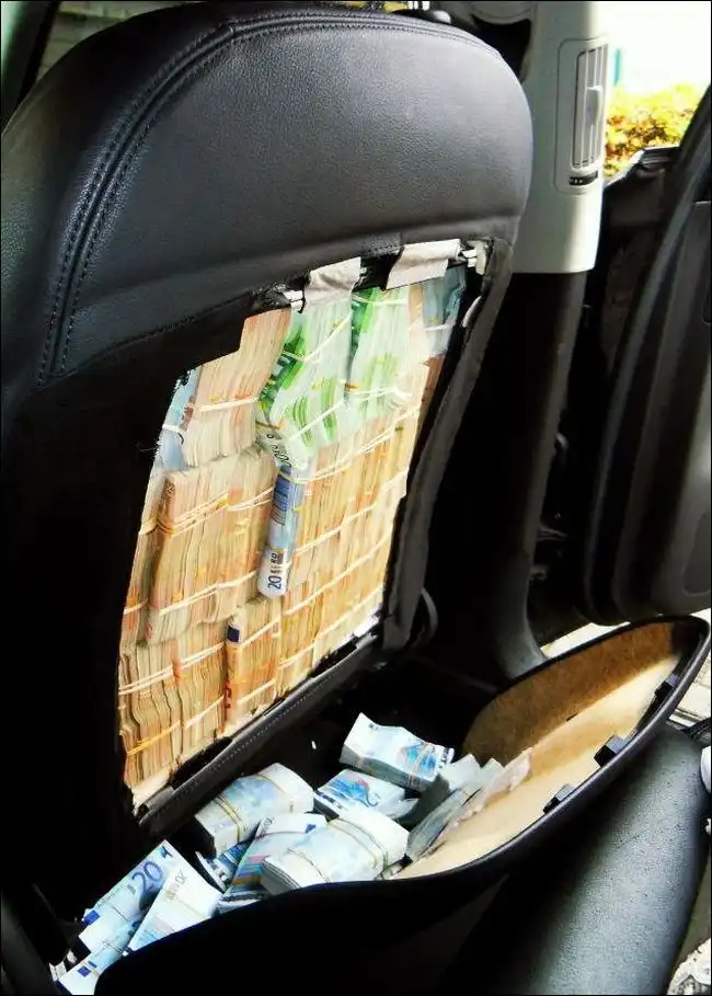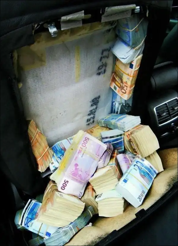 в 1,8 млн. евро, которая была предусмотрительно зашита в обивке сидений.