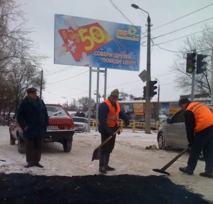 С первым выпавшим снегом откуда ни возьмись стали появляться ремонтные дорожные бригады, которые, как-будто специально ждали наступления холодов и обильного снега, чтобы начать латать дыры в асфальте. Ну это же просто нонсенс!