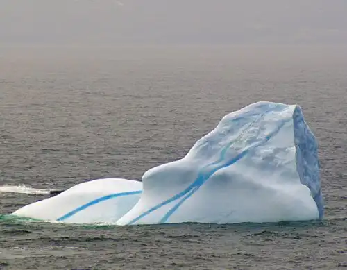 Айсберг выглядит белым из-за крошечных пузырьков, замурованных во льду, а также благодаря рассеиванию света. Голубые полосы образуются, когда трещина в ледяном щите наполняется талой водой и быстро замерзает. В этом случае, пузырьки не могут образоваться. Когда вода богата водорослями, полосы окрашиваются в зелёный цвет и многие другие оттенки.