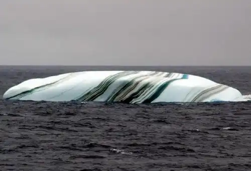 Чаще всего айсберги обладают синими и зелеными полосами, но изредка можно встретить и коричневые полосы. Это явление часто встречается в Южном океане. Полосатые айсберги с несколькими цветными полосами, включая желтые, коричневые, черные и синие, довольно часто встречаются в холодных водах вокруг Антарктиды. Айсберги образуются, когда большие куски льда отламываются от шельфового ледника и падают в море.