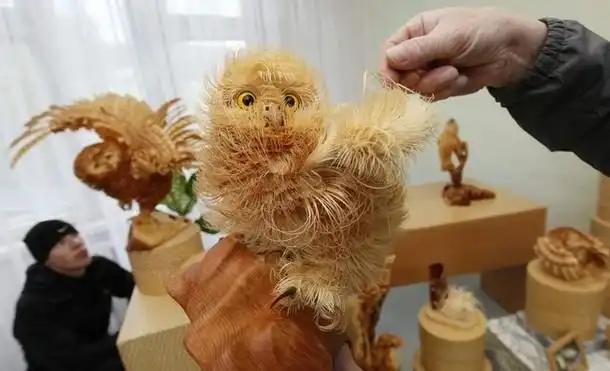 Художественные изделия Сергея Бобкова выглядят настолько натурально и реалистично, что сразу и не догадаешься, что сделаны они из древесной стружки, а попросту - из опилок. Технология настолько уникальна, что 53-летнему художнику удалось получить патент на изготовление скульптур из опилок. Сам Сергей Бобков рассказывает о своем искусстве так: "Мне совсем неинтересно делать то, что все умеют делать. А вот создать что-то необычное - это другое дело, это вдохновляет".