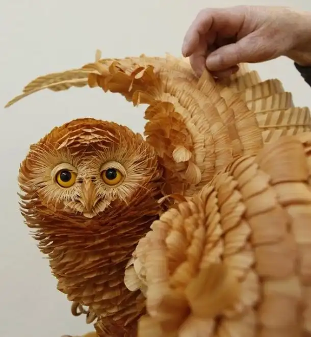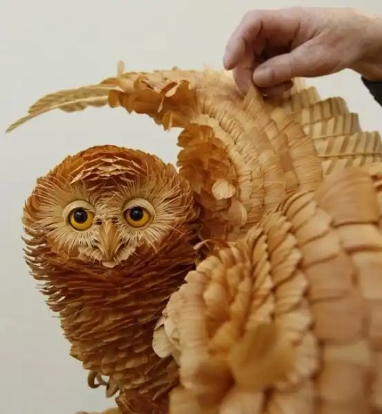 Пока у Сергея в коллекции всего 11 скульптур. И неудивительно, на изготовление одного изделия у него уходит не менее 6 месяцев, если при этом работать по 10-12 часов каждый день, без выходных. Но работа того стоит - результат просто сногшибательный и практически не отличается от прототипа. Мгогие даже сравнивают работы Сергея Бобкова с чучелами животных, настолько мала разница во внешнем виде. Но Сергей утверждает, что это абсолютно разные вещи, как свет и тьма. Ведь набивка чучел напрямую связана со смертью, в то время как изделия Сергея из стружки символизируют жизнь.