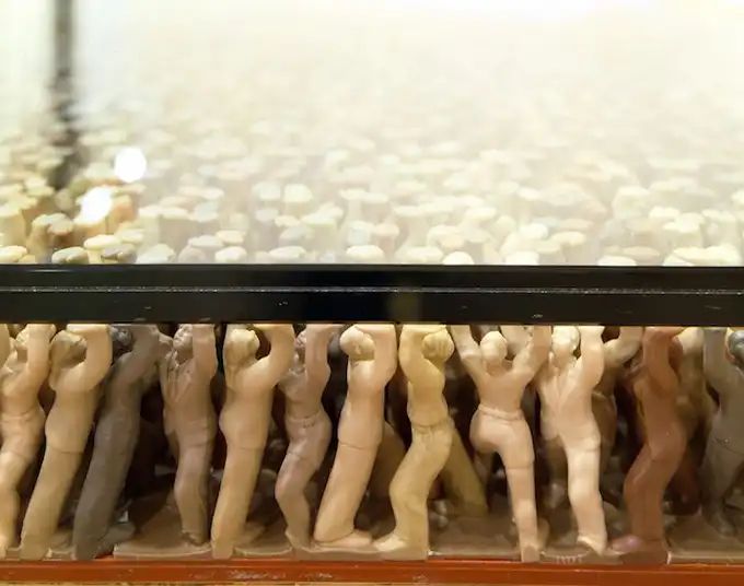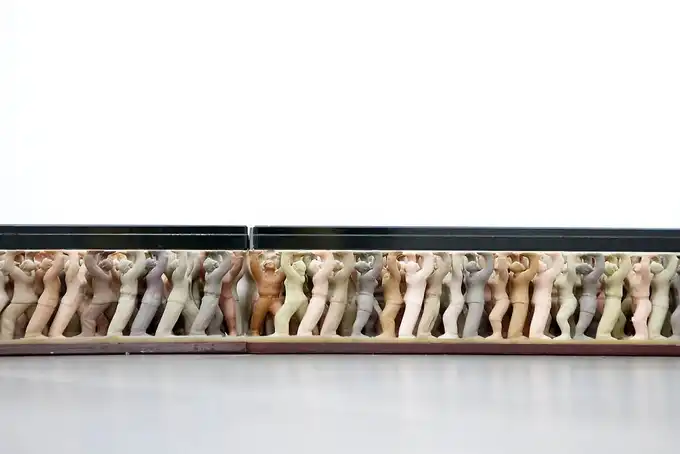 Ду Ху Са (Do Ho Suh) — один из ведущих современных художников корейского происхождения. Родился в 1962 году в Сеуле. Изучал живопись в Rhode Island School of Design и скульптуру в Yale University. Создает масштабные и зрелищные инсталляции - стеклянные пластины опираются на тысячи разноцветных миниатюрных пластмассовых фигурок, которые поддерживают стекло руками и головами.