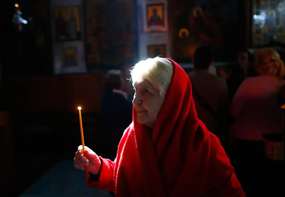 Верующая посещает Базилику Рождества Христова, построенную над местом, где, согласно преданию, родился Иисус Христос, в городе Вифлеем на Западном берегу реки Иордан, 24 ноября 2012 года.
