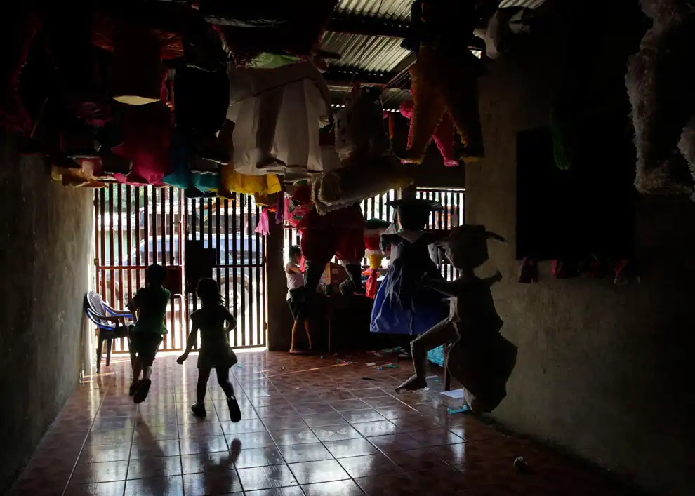 Дети играют в магазине пиньят, игрушек из бумаги или папье-маше, в Манагуа, Никарагуа, 12 ноября 2012 года. Правительство планирует подарить детям на Рождество 250 тысяч пиньят.