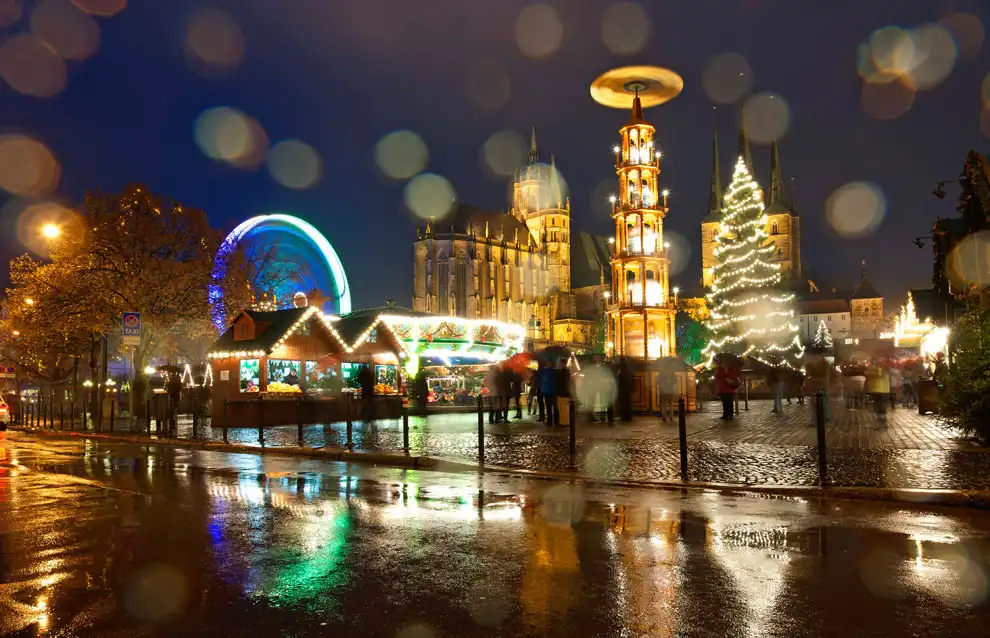 Поделки тюрингских мастеров и сладости продаются в палатках на рождественском базаре в Эрфурте, Германия, 28 ноября 2012 года.