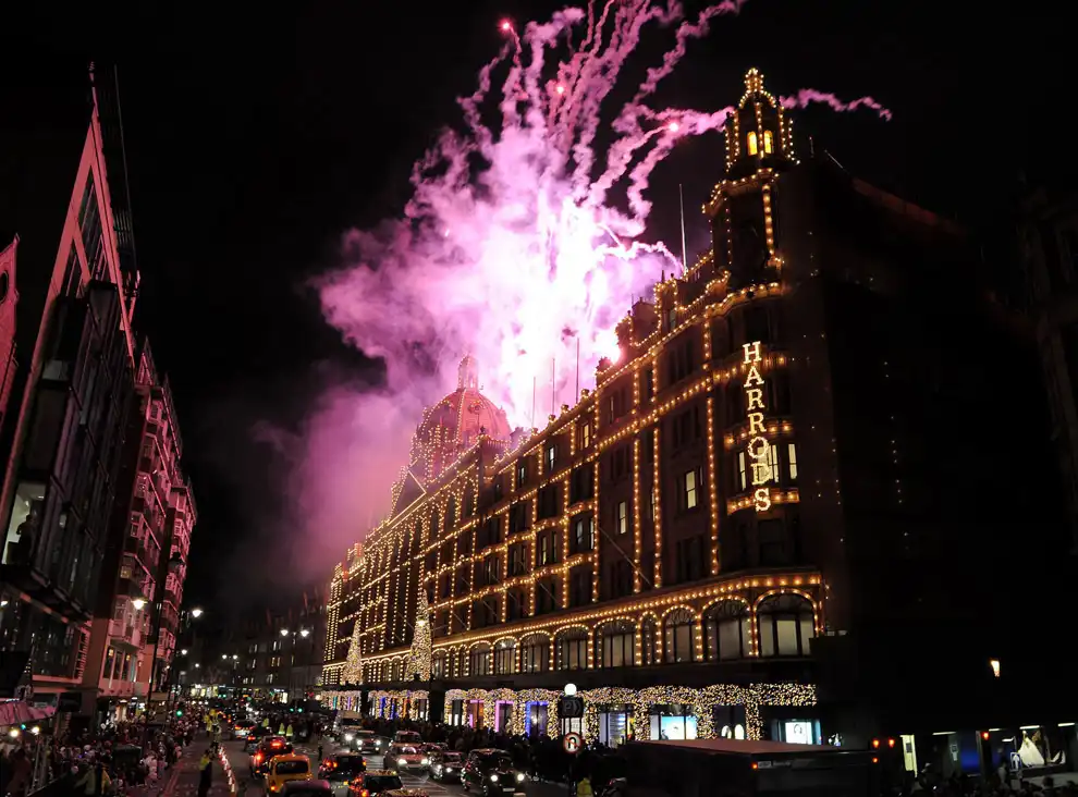 Фейерверки взрываются над украшенным рождественскими огнями универмагом «Harrods» в Лондоне, 1 ноября 2012 года.