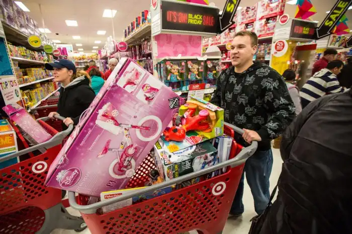 Мужчина покупает подарки своим детям в магазине в Брейнтри, штат Массачусетс, в «Чёрную пятницу», 23 ноября 2012 года.