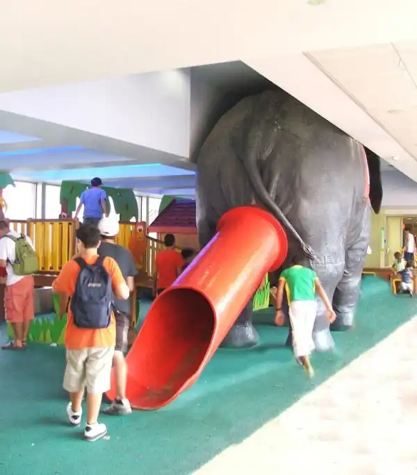 Мда.. вот такие креативные аттракционы для маленьких деток проектируют современные дизайнеры. Интересно, а у детей не возникает никаких вопросов, почему выход из горки находится у слона в весьма деликатном месте? ;)