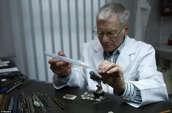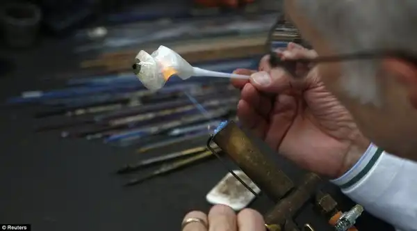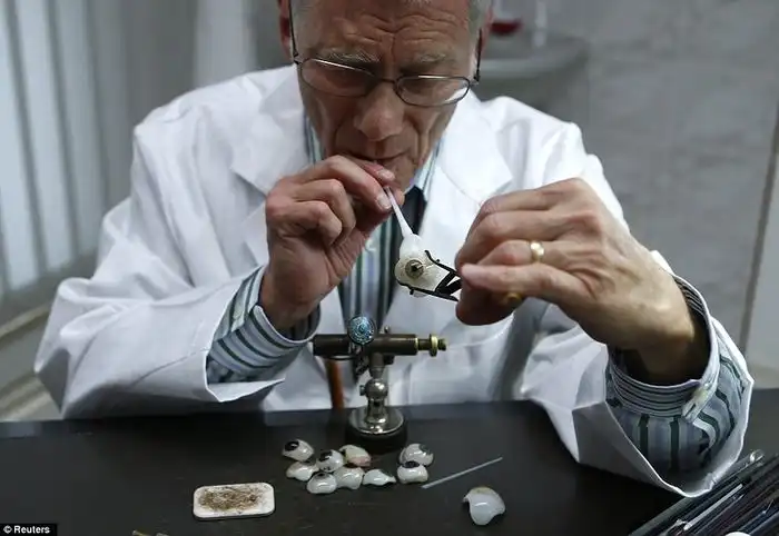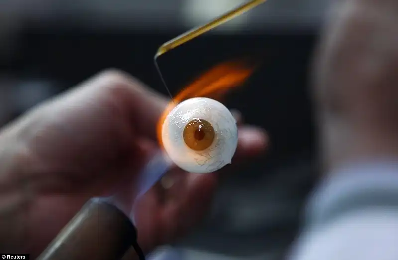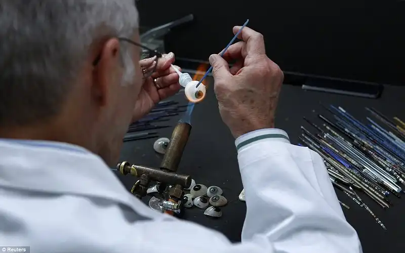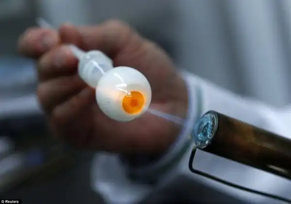 Выдувает он их из стекла. На изготовление одного искусственного глаза уходит около часа.