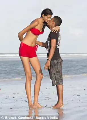 17-летняя Элисан-да-Курус Сильва с ростом 2 метра 5 сантиметров и её молодой человек.