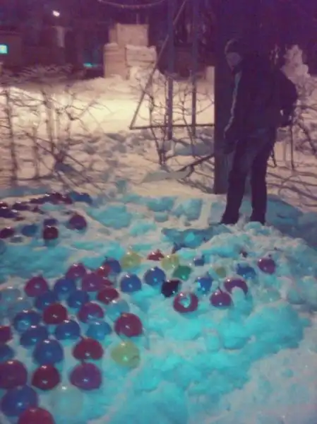 Если вы хотите красиво и в то же время креативно украсить свой сад в загородном доме, предлагаю вам прочитать далее, как своими руками изготовить прикольные разноцветные шары из льда. Делается это все довольно-таки быстро и просто, а такое украшение сада подарит настоящую новогоднюю атмосферу.