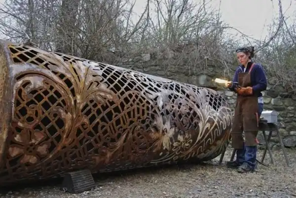 Эту девушку зовут Кэйл Лэйн. Она выбрала себе мужское занятие и, сумела превратить свою работу в настоящее искусство. Посмотрите, какие шедевры делает эта хрупкая девушка- кузнец. Старым, уже отслужившим, казалось бы свое предметам, она дарит новую яркую жизнь. Сваркой, как вязальщицы коклюшками, плетет из них великолепное тонкое кружево.