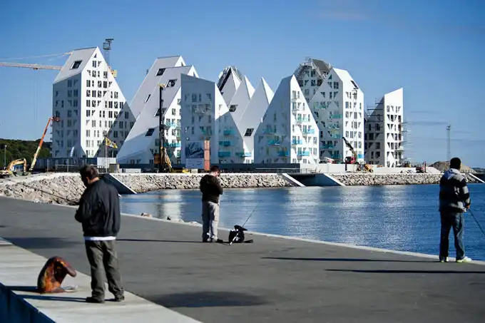 Проект Isbjerget практически достроен в датском Орхусе. Для его строительства объединились seARCH, CEBRA, JDS Architects и Louis Paillard. Верхнюю часть зданий комплекса планируется отвести под апартаменты, а внизу расположится коммерческая часть - магазины и офисы.