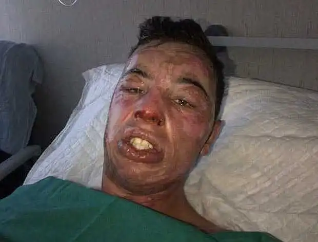 18-летний Джек Кирк, в одном из заведений со своим другом купили бутылку абсента и принялись распивать алкогольный напиток в гостиничном номере. Спустя полчаса один из друзей решил закурить, не заметив, что в этот момент Кирк, сидящий рядом, поднес к лицу рюмку со спиртным.Пары крепкого алкогольного напитка воспламенились в мгновение ока, а затем огонь перекинулся на лицо Джека.Лицо 18-летнего парня поразило даже опытных врачей - покрытая волдырями кожа, вздувшиеся веки и почерневшие губы.