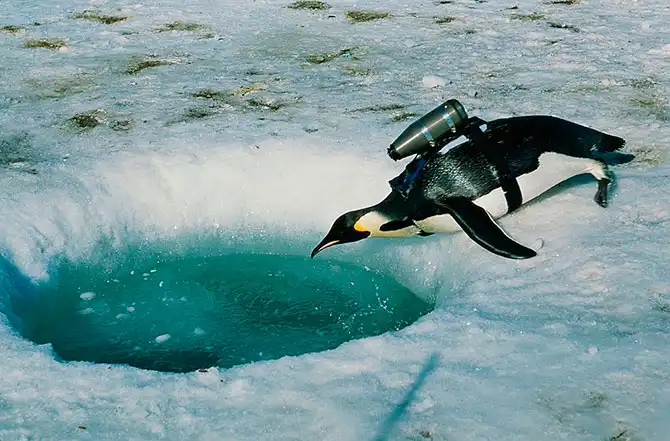 Антарктида. Для съемки нового фильма журналисты National Geographic закрепили на спину пингвина камеру.