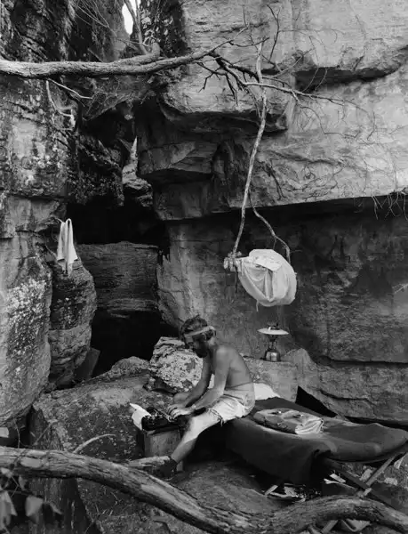 1988 год. Журналист National Geographic в своем австралийском «офисе» за работой на печатной машинке.