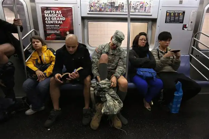 в одном нижнем белье, тем самым шокируя других пассажиров метро