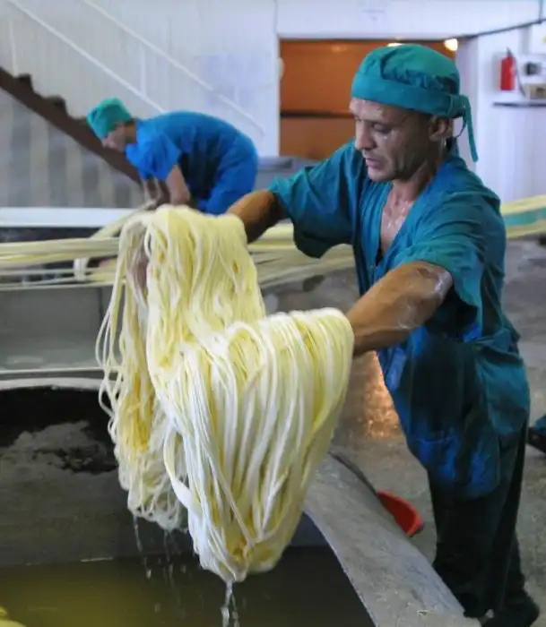 Многие из нас любят употребл*ть копченый сыр сулугуни в качестве закуски к пиву. Этот вкусный вид сыра, который также принято называть "ниточным", стоит совсем недорого и отлично подходит к любому сорту пива. Давайте посмотрим далее, как производится такой сыр в Хакасии, а именно в городе Абакан.