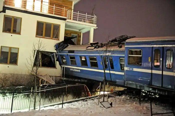непредназначенном для этого участке пути, что привело к его схождению с рельс.