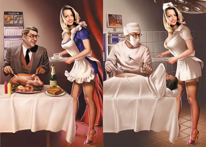 Нижегородский художник Валерий Барыкин рисует иллюстрации в жанре пин-ап и советских агитационных плакатов.