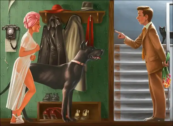 Он создает иллюстрации при помощи заготовок: делает коллажи из старых фотографий и перерисовывает их в соответствии со своими задумками.