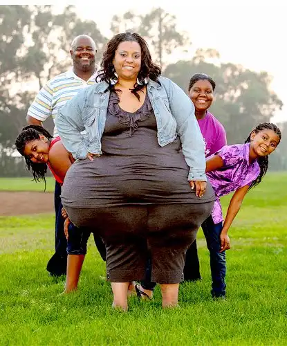40-летняя Mikel является обладательницей самых широких бёдер в мире, окружностью 245 см