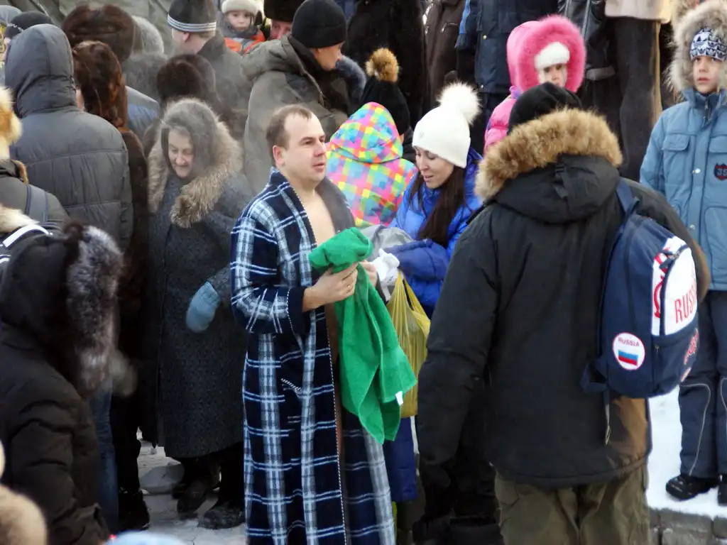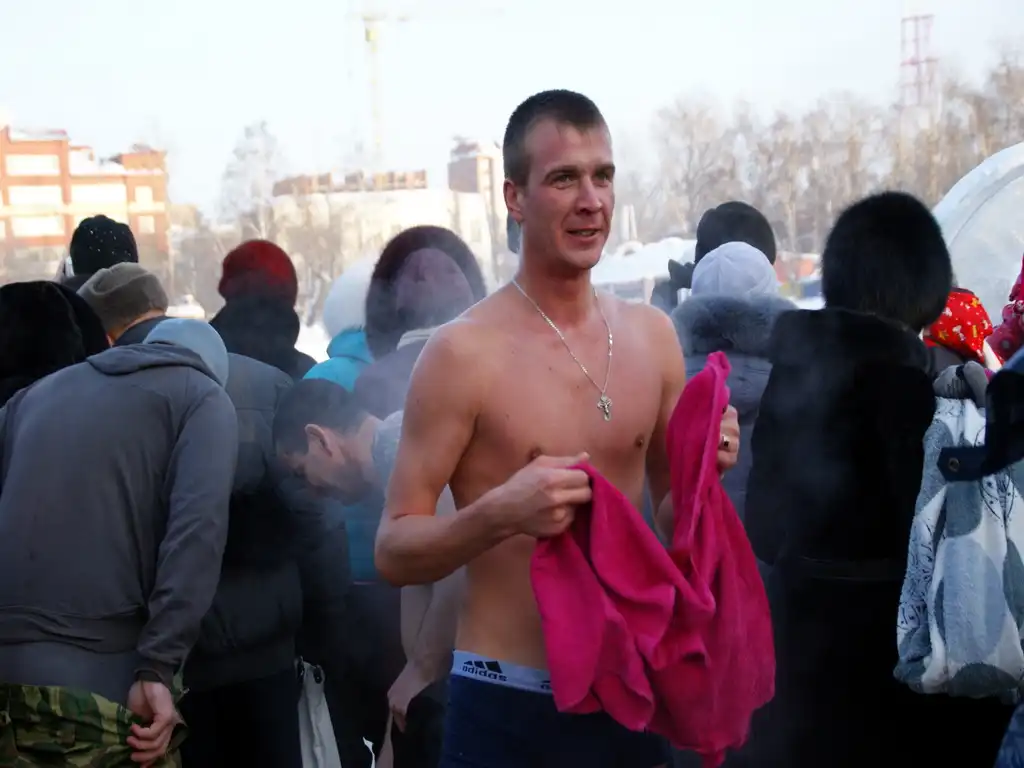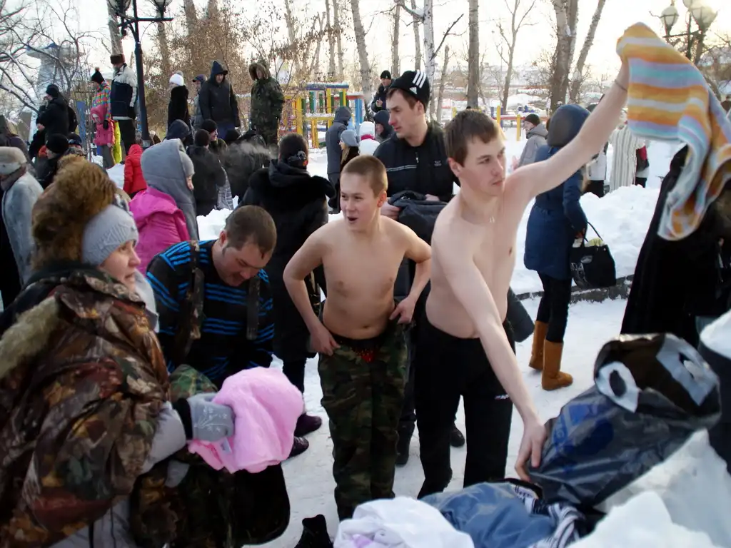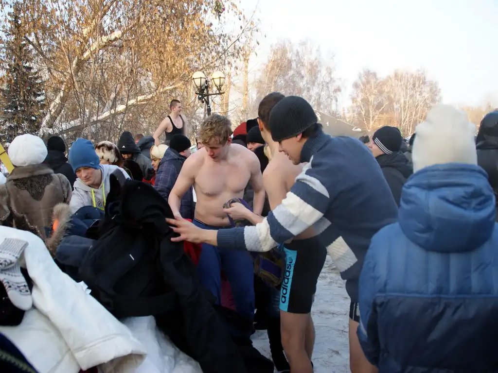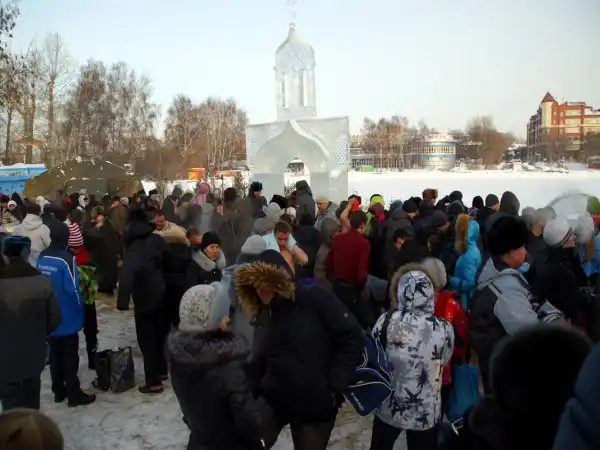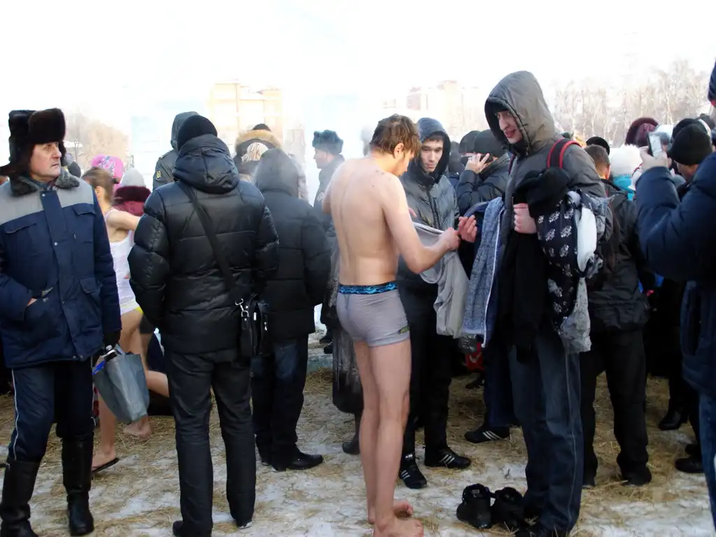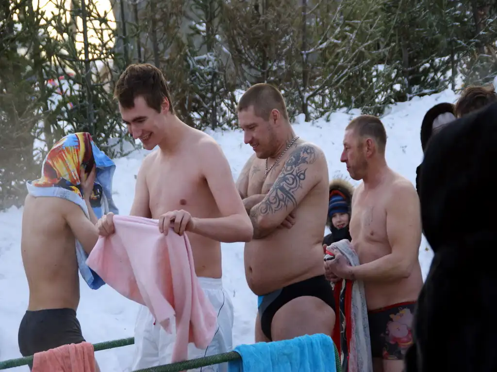 Томичи сильные духом и телом празднуют Крещение на Белом озере. Почет им и хвала.