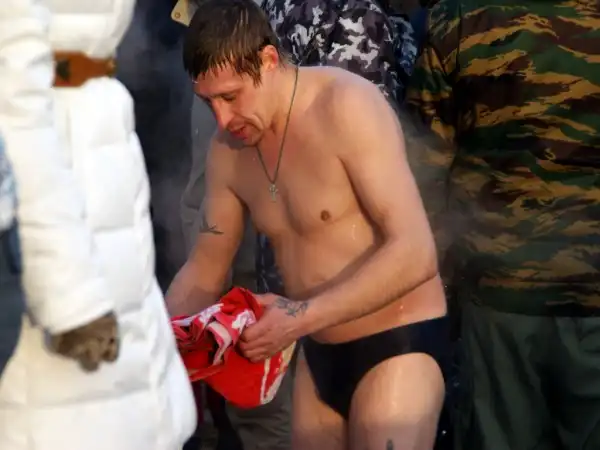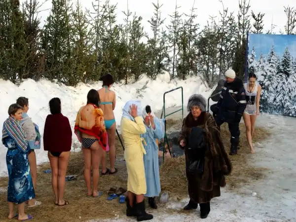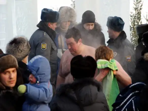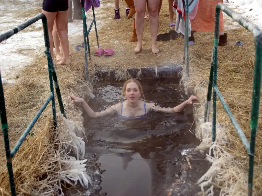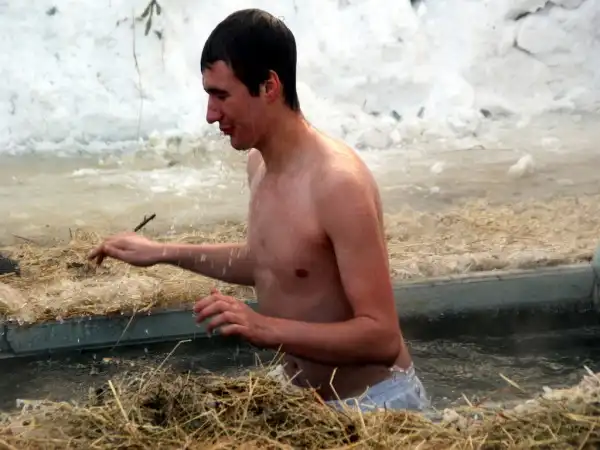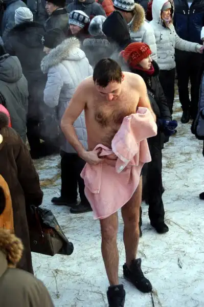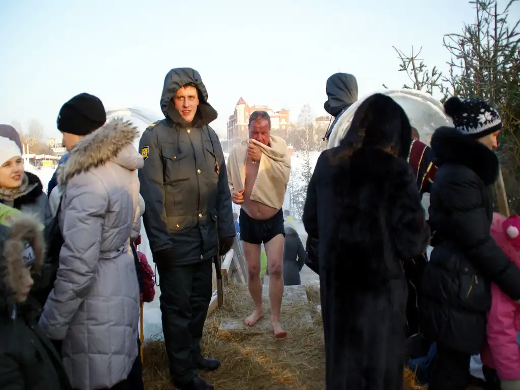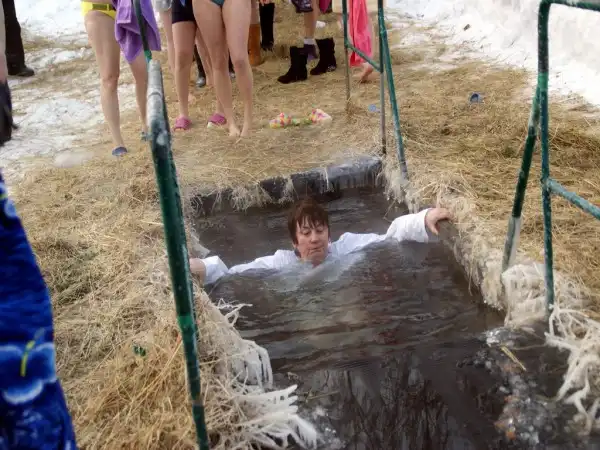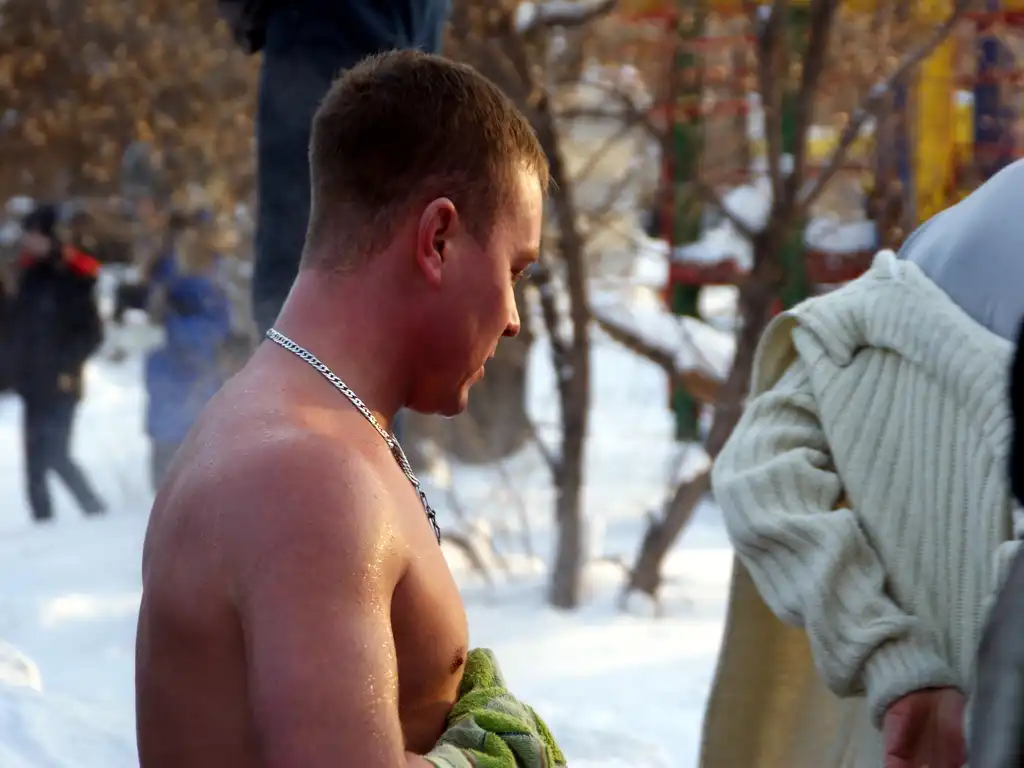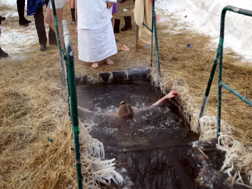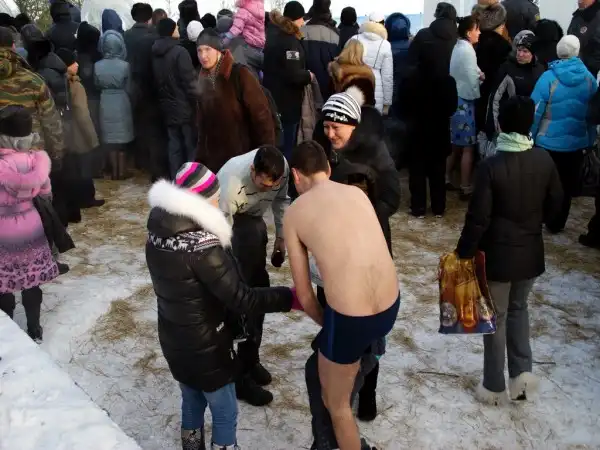 Томичи сильные духом и телом празднуют Крещение на Белом озере. Почет им и хвала.