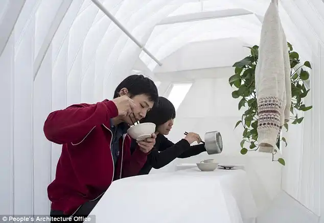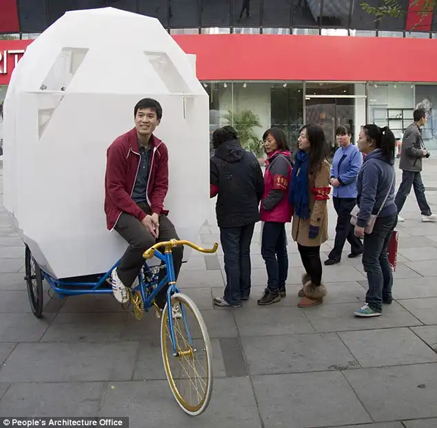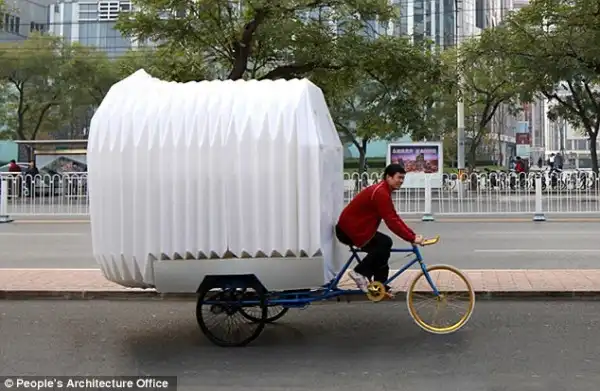 Это дом на колесах называют "Трехколесный дом", который был создан для людей, которые не могут позволить себе собственный дом. Он оснащен встроенным баком воды,ванной и печкой.Для населения Китая такой дом это реальный выход из сложившейся проблемы с нехваткой жилья в городах.
