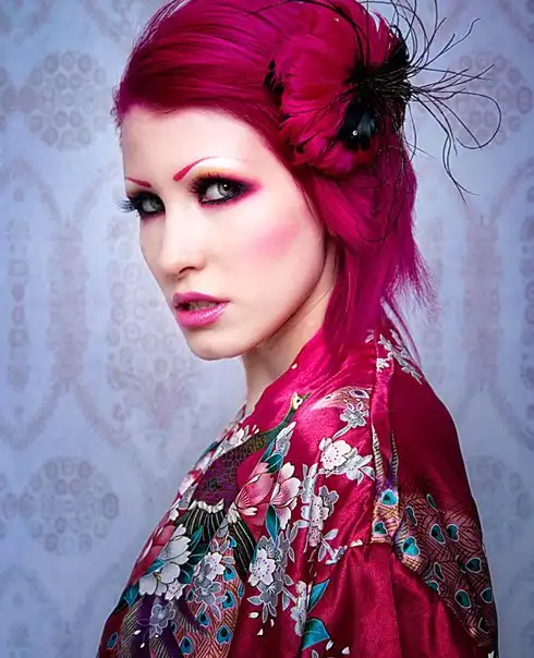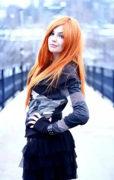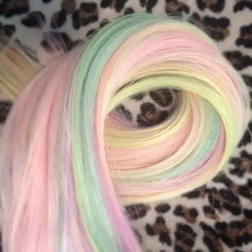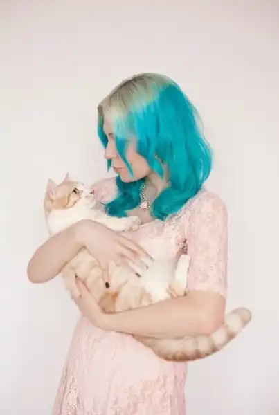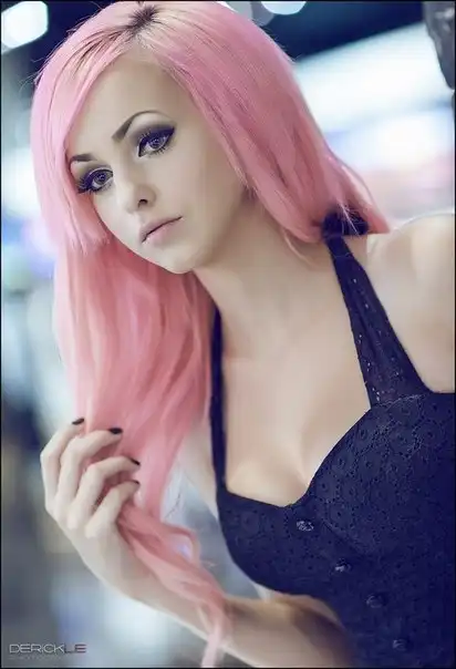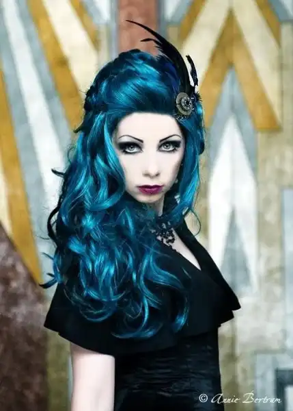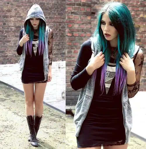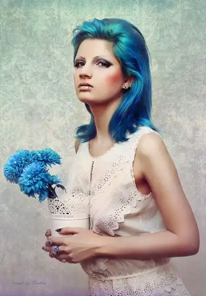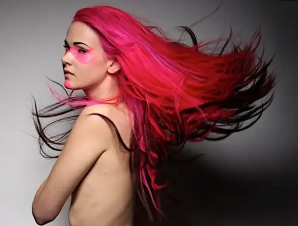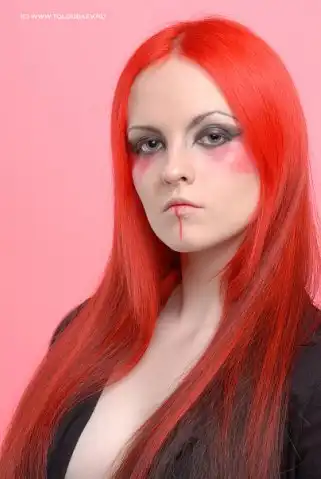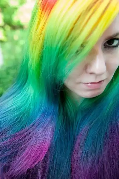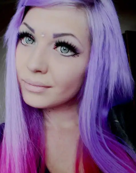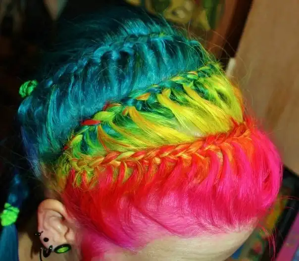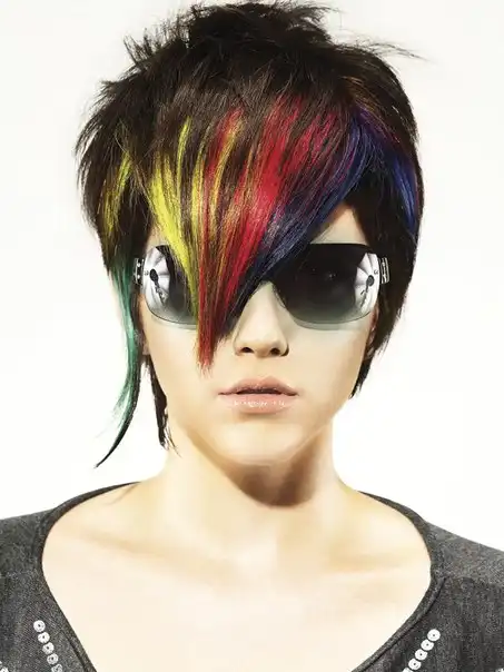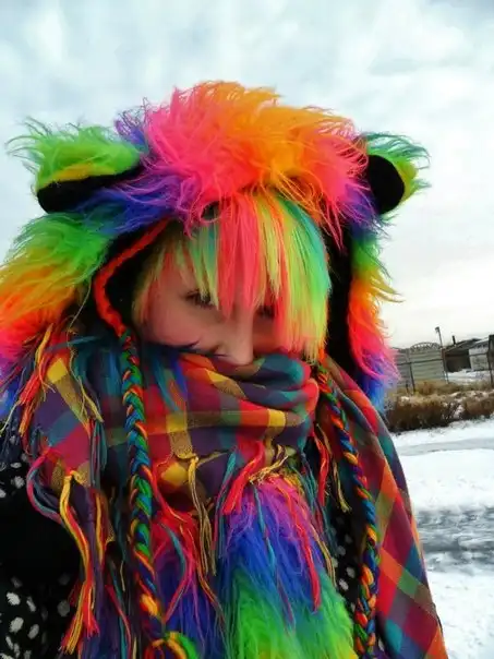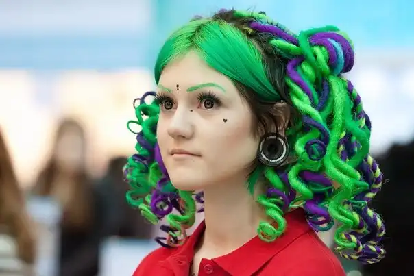 С цветными волосами.