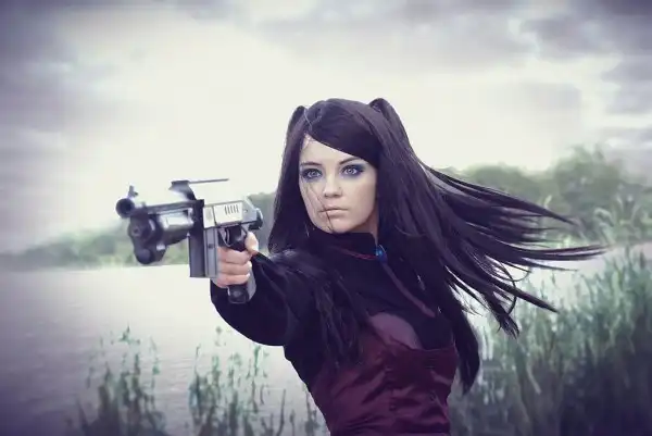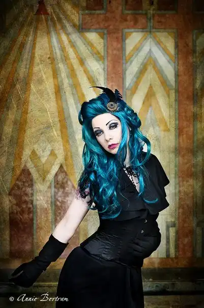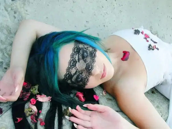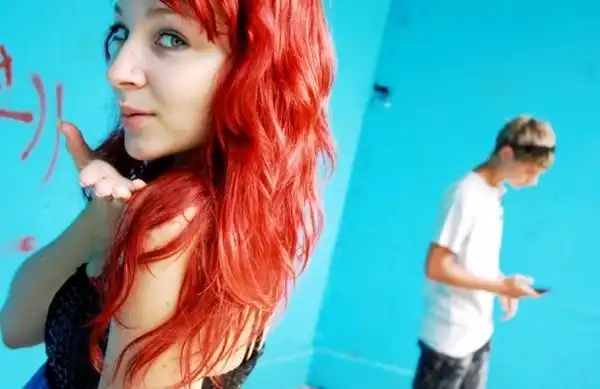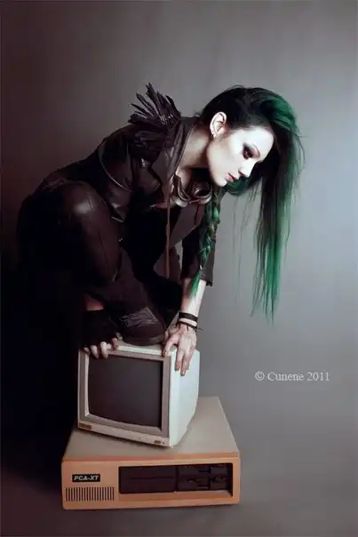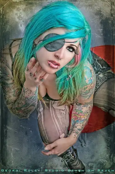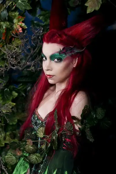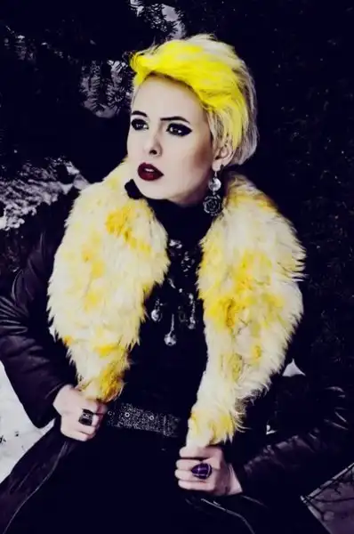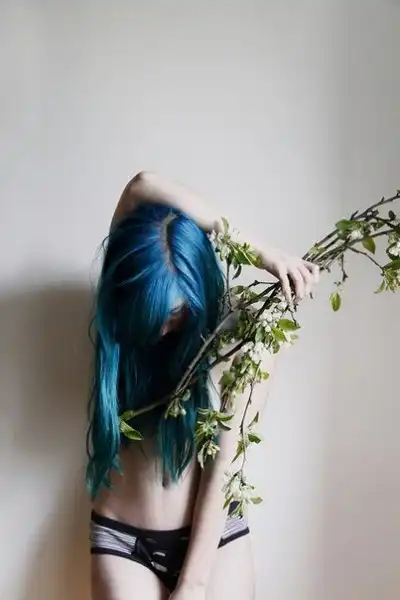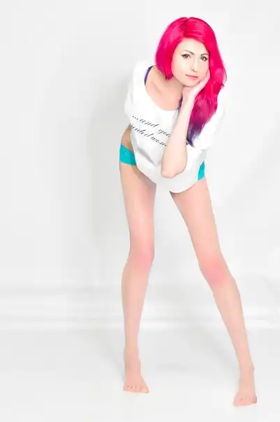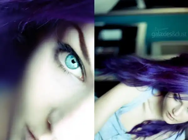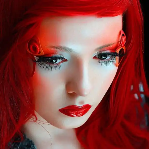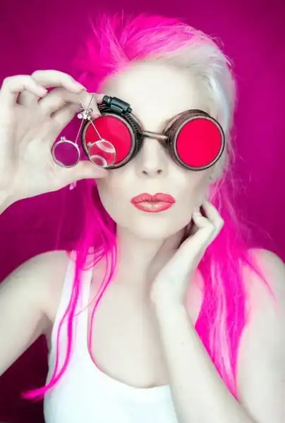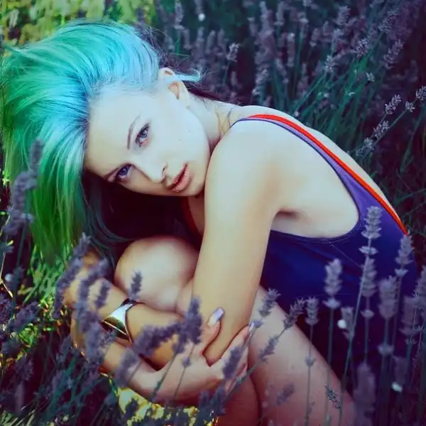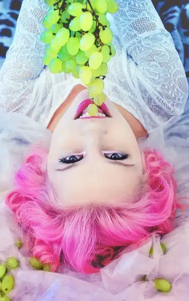 С цветными волосами.
