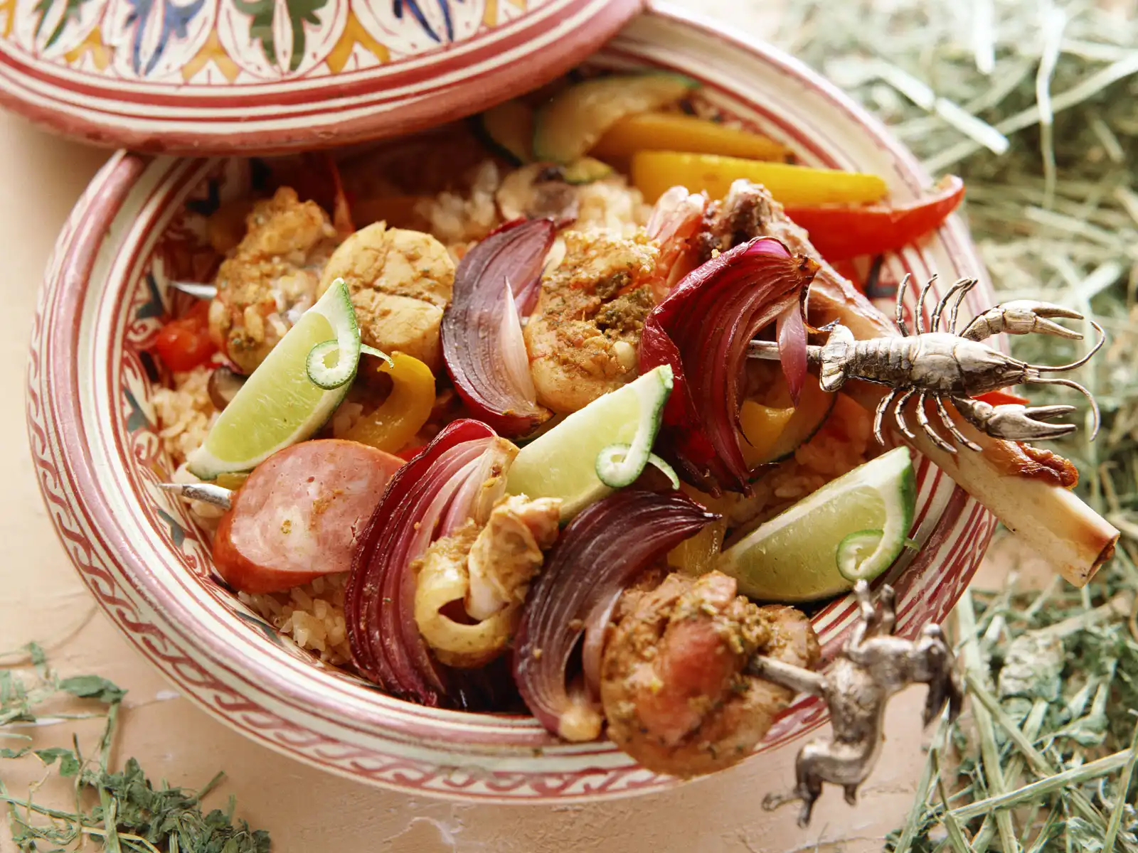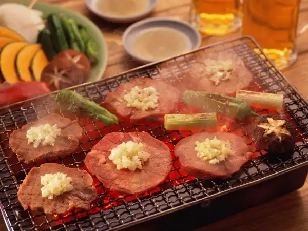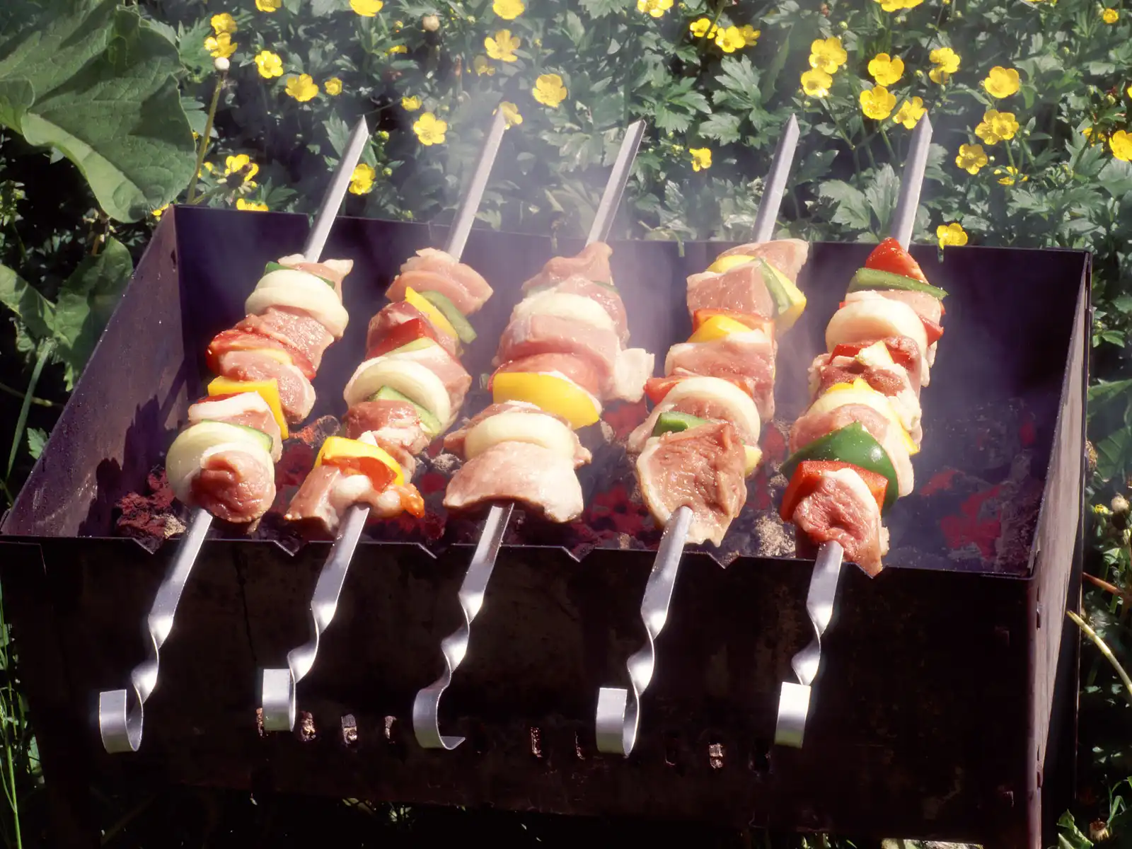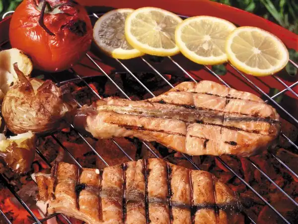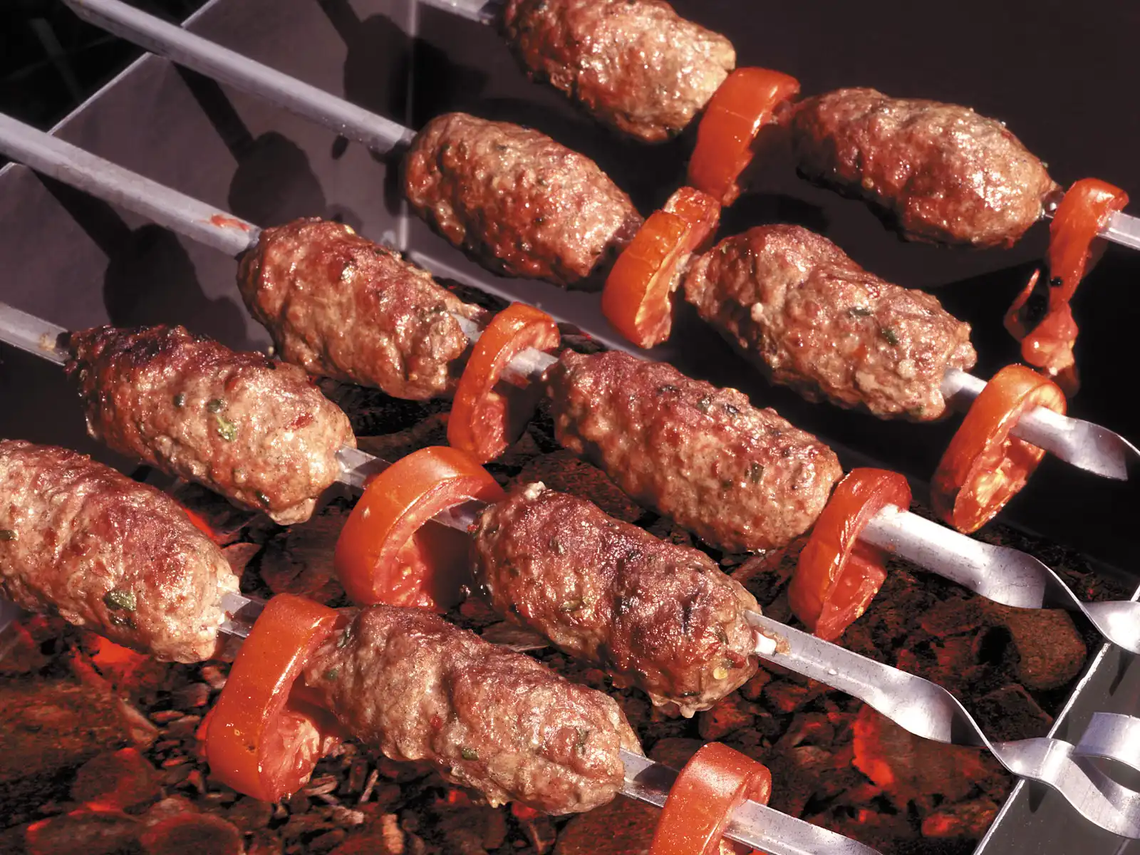 При подаче на стол на мясо кладут лук и поливают соком и жиром, полученными при жаренье мяса.