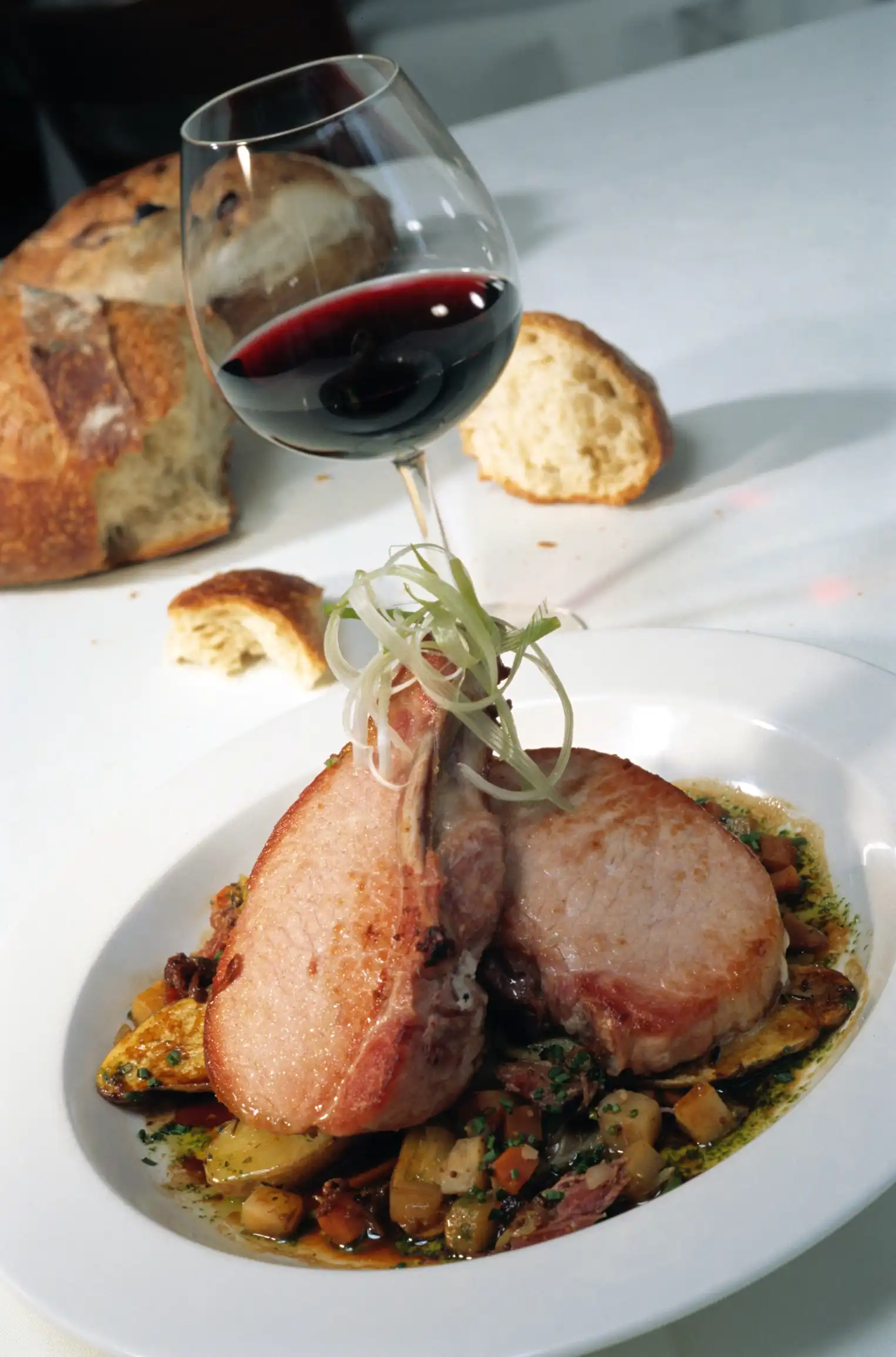 На гарнир подать жареный картофель. Мясо полить соком, полученным при жаренье, и растопленным маслом. Картофель посыпать зеленью петрушки или укропа.