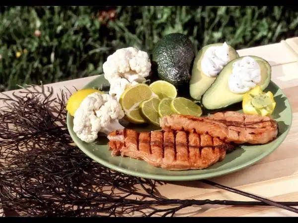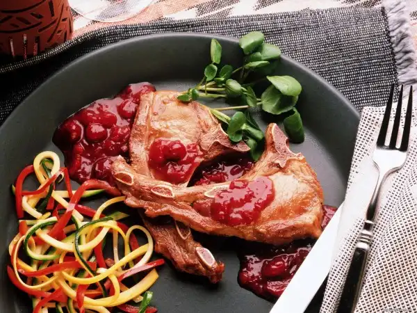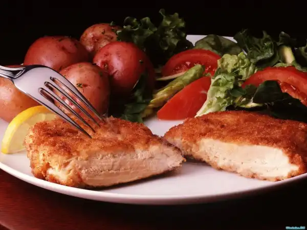 Подавать с картофелем фри и отварными овощами, зеленым салатом, салатом из сырых овощей.