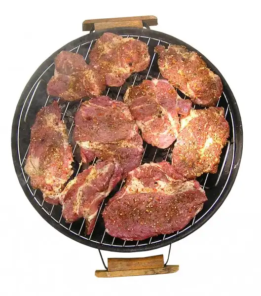 700 г говядины без кости (кострец) или 1 кг толстого и тонкого края, 60 г жира, 20 г масла, 80-100 г лука, 20 г муки, 4 яйца.