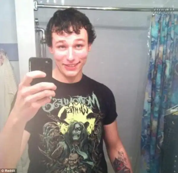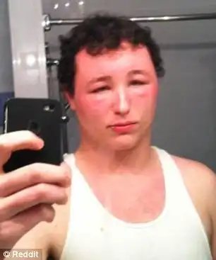У молодого человека жуткая аллергия на краску для волос.Парень зная об аллергии специально покрасил волосы,чтобы сфотографировать своё лицо когда оно меняется из-за аллергической реакции.Парня раздула как воздушный шарик.